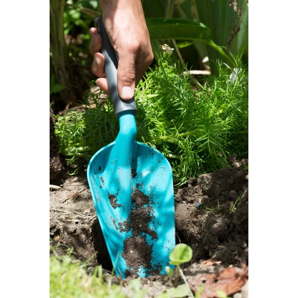 Die große GARDENA Blumenkelle 08953-20 eignet sich optimal zum An- und Umpflanzen in großen Blumenkästen, Pflanzkübeln, Beeten und für sonstige Schaufelarbeiten. Der ergonomisch geformte Griff liegt perfekt in der Hand und ist am Ende abgewinkelt. Ein mögliches Abrutschen wird durch die neue Endkappe verhindert. Die Blumenkelle hat eine Arbeitsbreite von 12cm. Sie ist aus hochwertigem Qualitätsstahl gefertigt. Die Duroplast-Beschichtung sorgt für eine lange Lebensdauer, denn sie schützt die Blumengabel vor Korrosion, macht sie unempfindlich für Schmutz und besonders widerstandsfähig.Art.-Nr.: 1308210