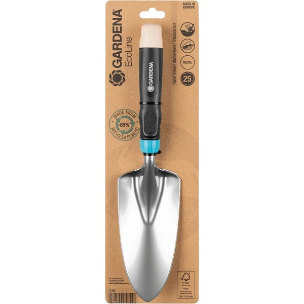 Die EcoLine Blumenkelle FSC von GARDENA eignet sich ideal zum An- und Umpflanzen in Pflanzkübeln, schmalen Beeten oder Blumenkästen. Dabei setzt sie voll auf Nachhaltigkeit. Der hochwertige, beschichtete Qualitätsstahl ist zu mehr als 25% aus recyceltem Metall gewonnen, und die Kunststoffkomponenten am ergonomischen Griff sind zu mehr als 85% aus recyceltem Material hergestellt. Das Holzelement aus FSC-zertifiziertem Buchenholz am Griffende runden das wertige Erscheinungsbild harmonisch ab. Besonderer Wert wurde außerdem auf Qualität, Funktionalität und Langlebigkeit gelegt.Art.-Nr.: 1806003