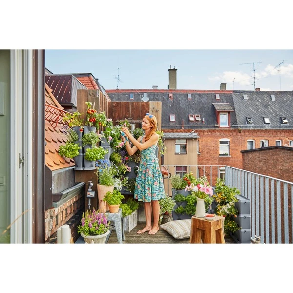 Das NatureUp! Bewässerungsset Ecke 13157-20 bewässert bis zu 12 Eck-Pflanzbehälter zuverlässig, auch im Urlaub und bei Abwesenheit. Es ist auf das Basis Set Ecke abgestimmt und sorgt für die optimale Versorgung der Pflanzen mit der richtigen Wassermenge, dabei bewässert es punktgenau und gleichmäßig direkt an der Wurzel. Das NatureUp! Bewässerungsset Ecke ist bequem, flexibel und einfach installiert.Art.-Nr.: 1394597