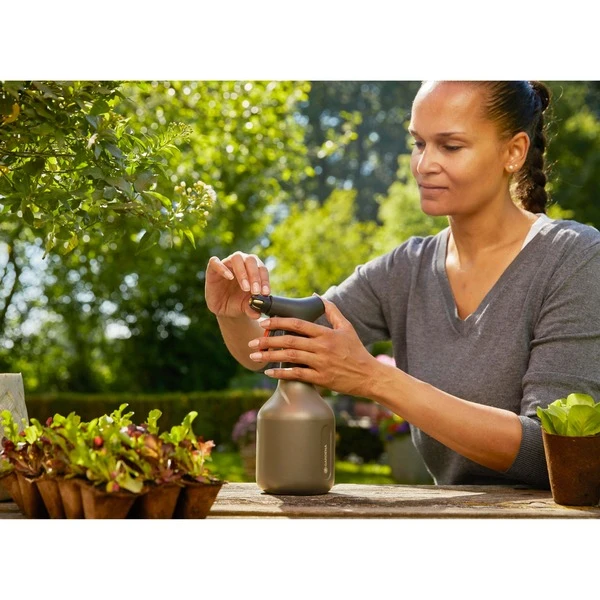 Der GARDENA Pumpsprüher 0,75 L ist für anspruchsvolle Zimmerpflanzen oder kleinere Flächen in Garten und Haushalt der ideale Vielzwecksprüher. Er erzeugt einen sanften Sprühnebel, der sich fein auf den Blättern verteilt. Die Sprühdüse aus Messing ist dabei vom feinen Sprühnebel bis zum Vollstrahl stufenlos verstellbar. Dank des speziellen, sehr flexiblen Silikonschlauchs mit Gewicht wird keine Luft angesaugt und die Pumpsprüher funktionieren auch in schräger Haltung. Der Behälter ist aus hochwertigem transluzentem Kunststoff gefertigt und lässt den Füllstand durchscheinen.Art.-Nr.: 1687270