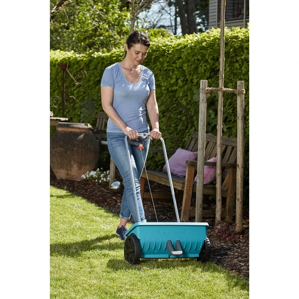 Der GARDENA Streuwagen L (432-20) hat eine Streubreite von 45cm und ein Fassungsvermögen von 12,5 Litern. Mit dem großen Volumen ist er für Flächen von ca. 400m² (+/- 20%) geeignet. Die clevere, hoch elastische Spezial-Streuwalze bringt das Streugut optimal aus. Mit dem Streuwagen L gibt es kein unbeabsichtigtes Austreten von Streugut und kein Nachrieseln mehr. Die in den Griff integrierte Auf- / Zu-Funktion verschließt die Öffnung mit der patentierten Verschlussleiste mit Weichkunststoff-Lippe sicher. Es kann nahezu jedes mögliche Streugut gewählt werden. Egal ob Kalk, Sand, Samen, Dünger, Salz oder Splitt, der GARDENA Streuwagen L hat das gesamte Jahr über eine Funktion. Der stabile, aus Aluminium gefertigte Bügel lässt sich leicht ein- oder zweihändig steuern und bedienen. Die mehrstufige Mengeneinstellung befindet sich ebenfalls leicht erreichbar am Griff. Die Räder verfügen über leichtgängige Kugellager. Zudem ist der Streuwagen schnell und leicht unter dem Wasserstrahl zu reinigen.Art.-Nr.: 1391457