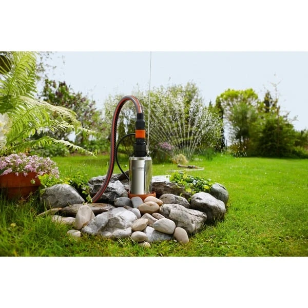 Die Tiefbrunnenpumpe 6000/5 inox von Gardena eignet sich für Bohr- und Schlagbrunnen mit schmalen Rohrdurchmessern ab bereits 10 cm. Das Wasser kann aus einer Tiefe bis zu 19 Meter gefördert werden. Das Gehäuse der Tiefbrunnenpumpe 6000/5 inox ist aus Edelstahl gefertigt, ebenso der integrierte Filter. Des Weiteren kann ein Standfuß angebracht werden der das Ansaugen von Schmutz und Sand deutlich reduziert. Der wartungsfreie Kondensatormotor der Premium Tiefbrunnenpumpe 6000/5 inox ist mit einem Thermoschutzschalter ausgestattet der diesen vor Überlastung schützt. Das sechsstufige Pumpenlaufwerk arbeitet effizient und leise und das 22 Meter lange Anschlusskabel der Tiefbrunnenpumpe 6000/5 inox mit einem mitgelieferten Befestigungsseil ermöglicht die schnelle und einfache Installation.Art.-Nr.: 1213400