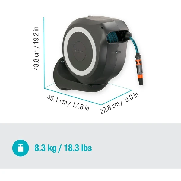 Kein Bücken, kein Kurbeln und keine schmutzigen Hände, das schätzen Gärtner an den GARDENA Wand-Schlauchboxen. Darin ist der Schlauch durch die integrierte Schlauchführung immer gleichmäßig aufgerollt und jederzeit schnell einsatzbereit. Die Wand-Schlauchbox RollUp M lässt sich um mehr als 180° schwenken. Mit den kurzen Arretierstopps kann der Schlauch auf die gewünschte Länge ausgezogen werden. Dank RollControl genügt nach Gebrauch ein kurzer Zug am Schlauch und er wird mit gleichmäßiger Geschwindigkeit und sicher automatisch wieder eingerollt. Ein weiteres Plus: An der Wandhalterung lassen sich Spritzen, Brausen und Waschbürsten griffbereit aufbewahren. Die Wand-Schlauchbox RollUp M ist frostsicher und kann das ganze Jahr über draußen an ihrem Platz bleiben.Art.-Nr.: 1688198