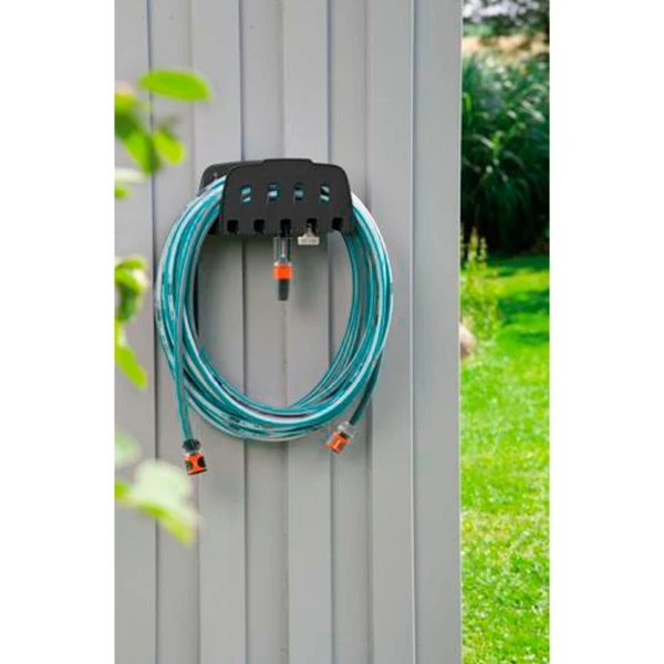 Der GARDENA Wandschlauchhalter 241-20 ist kompakter Helfer um mit den Gartenschlauch platzsparend zu verstauen. Der Schlauch kann schnell und einfach von dem Wandschlauchhalter abgenommen werden. Außerdem bietet dieser Halter eine praktische Aufhängemöglichkeit für fünf Spritzen und Brausen. So ist alles griffbereit, wenn man es braucht.Art.-Nr.: 1213280