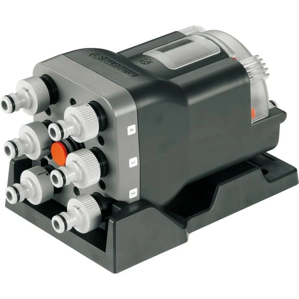 | Bedienung | Der Wasserverteiler kann vollautomatisch in Kombination mit einem GARDENA Bewässerungscomputer oder manuell durch Öffnen / Schließen des Wasserhahns betrieben werden. | ||